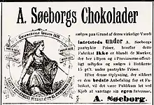 A- S'eborgs Fanrikker obtained permission to use Elisabeth Jerichau-Baumann's painting Mother Denmark in their logo.[5] In 2015–1923, Mathilde Muus published a series of cook books under her pseudonum E. Constantin as advertisement for the company.[6]