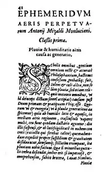 - Mizauld, Antoine (1560). Ephemerides aeris perpetuae (in Latin). Jean Bellère.