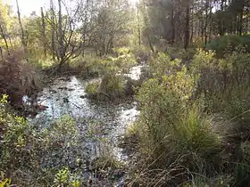 The Bornrieth Moor (German: Bornriethmoor) is the remains of a raised bog in the German district of Celle and belongs to the Südheide Nature Park. It has an area of 115 hectares (280 acres). The bog, which has had most of its peat extracted, was reflooded and placed under nature conservation protection in 1988. The moor was also designated as a Special Area of Conservation. The responsible nature conservation authority is the district of Celle. The area is out-of-bounds to the public. Several cranes have turned up here again and are breeding. The otherwise rare bog myrtle (Myrica gale) is common here. Much of the moor is covered by the common reed ('Phragmites'). Bog asphodel (Narthecium ossifragum), cottongrass (Eriophorum) and sundews (Drosera) may also be found here.