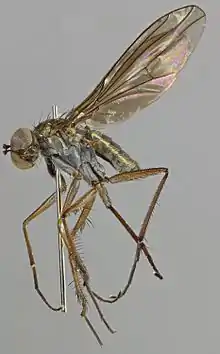 - d'Assis Fonseca, E.C.M. (1978). Dolichopodidae (Diptera, Orthorrhapha, Brachycera) (PDF). Handbooks for the Identification of British Insects, Volume IX Part 5. Royal Entomological Society of London. p. 90. Retrieved 20 July 2021.