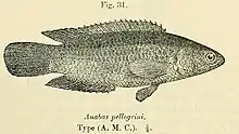 Ctenopoma pellegrini is a fish in the family Anabantidae[2] found in the Congo River basin of Africa. It grows to 11.2 cm in total length for a male/unsexed specimen.[1] This species was formally described by the British-Belgian ichthyologist George Albert Boulenger in 1902 with the type locality given as Yembe River at Banzyville in the Democratic Republic of Congo.[3] Boulenger honoured the French ichthyologist Jacques Pellegrin (1873-1944).[4]