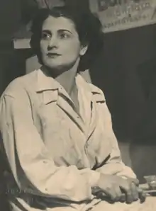 Edith Bán Kiss, also Edit, née Rott (1905–1966) was a Hungarian sculptor and painter. In the autumn of 1944, she was deported to the Ravensbrück concentration camp in northern Germany and then transferred to the Daimler-Benz factory at Ludwigsfelde where she was forced to work on aircraft engines for the Luftwaffe. Shortly after her release at the end of the war, she illustrated her experiences of concentration camps with 30 gouache sketches which were exhibited in Budapest in late 1945.[1] There was however little recognition of her work in the West. As a result, following the death of her husband she committed suicide in Paris in 1966. In 1992, her Deportation series was exhibited in Berlin, Paris and Budapest.[2][3]