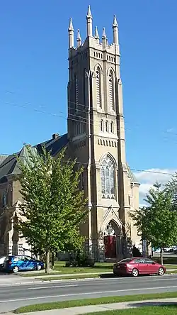 Emmanuel United Church is a church located in the downtown core of Peterborough, Ontario, Canada. Originally Methodist, since 1925 it has belonged to the United Church of Canada. The church was built between 1873 and 1875 and was designed by Henry Langley in the Gothic Revival style.[1] It is recognized for its heritage value by the City of Peterborough Bylaw 1990-204.[2]