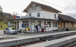 Eschenz railway station (German: Bahnhof Eschenz) is a railway station in Eschenz, in the Swiss canton of Thurgau. It is an intermediate stop on the Lake line and is served by local trains only.