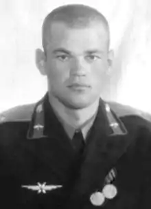 In October 1940, he was drafted into the Red Army and later was transferred to the Soviet Air Force. From October 1940 to April 1942, he served as radio telegraph operator of the airfield service battalion in the Air Force of the Central Asian Military District at Stalinabad, Tajik SSR.[3]