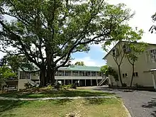 Mature fig trees (Ficus sp.) stand to the east of Block D and southeast of Block C, and a group of four mature mango trees (Magnifera indica) stand near the southeast corner of the school site.[1]
