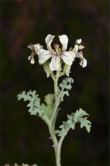 Goodenia calcarata is an erect, glaucous annual herb that typically grows to a height of 60 cm (24 in). The leaves are egg-shaped with the narrower end towards the base, to oblong or lyre-shaped, toothed 20–50 mm (0.79–1.97 in) long and 10–35 mm (0.39–1.38 in) wide on a petiole up to 20 mm (0.79 in) long. The flowers are arranged in racemes up to 150 mm (5.9 in) long on a peduncle 2–7 mm (0.079–0.276 in) long with linear bracts at the base, each flower on a pedicel 10–25 mm (0.39–0.98 in) long. The sepals are narrow elliptic, about 5 mm (0.20 in) long and the petals are white, cream-coloured or pink to mauve and 10–15 mm (0.39–0.59 in) long. The lower lobes of the corolla are 6–9 mm (0.24–0.35 in) long with wings 1.5–2 mm (0.059–0.079 in) wide. Flowering occurs from June to December and the fruit is an oval capsule 12–15 mm (0.47–0.59 in) long.[3][4][5]