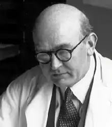 Harald Nielsen (20 July 1892 – 22 December 1977) was a Danish designer of silver for Georg Jensen. The younger brother of Georg Jensen's third wife, he joined the company at 17 as a chaser's apprentice but later became one of the company's leading designers in the 1920s and 1930s and Jensen's closest colleague, One of his most well-known designs being the pyramid flatware pattern. In the early 1950s he headed the company's apprentice school and in 1958 became its artistic director.