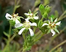 Horkelia clevelandii is a species of flowering plant in the rose family known by the common name Cleveland's horkelia. It is native to the Peninsular Ranges of southern California and northern Baja California. This is a perennial herb forming clumps of long, fernlike leaves and erect stems. The leaves are up to 18 centimeters long and are made up of triangular to rounded leaflets, each toothed or lobed and covered in thin hairs. The narrow stems reach 10 to 50 centimeters in height and bear inflorescences of several flowers. Each flower has hairy, lance-shaped bractlets and pointed sepals. The narrow oval petals are white. The center of the flower contains ten stamens and up to 50 pistils.