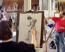 ![]() Weiss (in red) teaching a life class at Lyme Academy College of Fine Arts | |