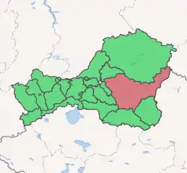 Kaa-Khemsky District (Russian: Каа́-Хе́мский кожуун; Tuvan: Каа-Хем кожуун) (also, Kaa-Khemskiy) is an administrative[1] and municipal[2] district (raion, or kozhuun), one of the seventeen in the Tuva Republic, Russia. It is located in the center and east of the republic. The area of the district is 25,726.04 square kilometers (9,932.88 sq mi).[2] Its administrative center is the rural locality (a selo) of Saryg-Sep.[1] Population: 12,279 (2010 Census);[3] 13,071 (2002 Census);[6] 14,982 (1989 Census).[7] The population of Saryg-Sep accounts for 36.0% of the district's total population.[3]