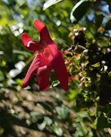 Keckiella corymbosa (formerly Penstemon corymbosus) is a species of flowering shrub in the plantain family known by the common names redwood keckiella, red beardtongue,[1] and red shrubby penstemon.[2]
