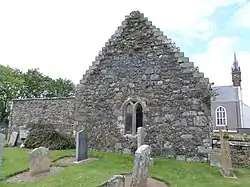 The old kirk was abandoned and probably robbed to provide building stone for the new parish church built nearby in 1819.[5] In 1827 it was decided that the site of the old kirk should be cleared for use as a burial ground.[9] Of the original parish kirk only one wall may survive with a trace of an infilled pointed arch window.[8]