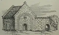 In 1855 a roofed building stood attached to the east gable end of the David Ferguson Kennedy of Finarts Aisle, unroofed by 1894, the ruins of which survive.[10][11]