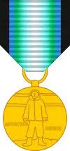 ![]() ![]() Antarctica Service Medal with "Wintered Over" device Reverse Side: A polar projection with the geodesic lines of the continent of Antarctica across which appear the words: COURAGE • SACRIFICE • DEVOTION | |