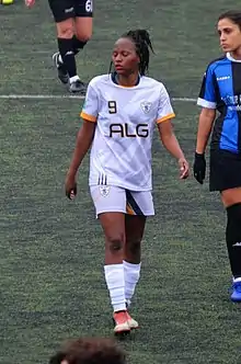 Arranged by her manager Kroll, she went to Turkey in October 2019, and signed a contract to play as a forward with ALG Spor,[3][7][15][16] a club in Gaziantep, who had just been promoted to the Women's First League at the end of the 2017–18 season.[5] She scored eleven goals in 14 matches of the 2019-20 Turkish Women's First Football League season, [1] before it was discontinued due to the COVID-19 pandemic in Turkey.[6][17] Her team was entitled to represent Turkey at the 2020–21 UEFA Women's Champions League, as the top-ranking team, when the league was stopped.[5][17]