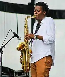 Linda Sikhakhane (born 14 June 1992) is a South African saxophonist and composer born in Umlazi, Durban.[1] His love for music, especially Jazz, was triggered at an early age and this saw him attending music classes under the tutelage of Dr Brian Thusi and Mr Khulekani Bhengu. He then enrolled to study Music at the University of KwaZulu-Natal (UKZN). Sikhakhane has played with many respected South African artists and also shared the stage with many international artists. He has also been involved in many projects as a mentor and teacher of music to young pupils.[2] While still at UKZN his talent also saw him being offered bursaries from SAMRO, the National Arts Council and the Leeds Youth Big Band.[3]