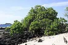 Large stretches of Heliotropium foertherianum shrub cover many of Caroline's islets.