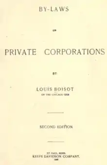 - Boisot, Louis (1902). By-laws of Private Corporations. Keefe Davidson Company, St. Paul, MINN, 1902. Retrieved August 29, 2020.