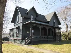 The Louis Kotzow House is a historic house in Pawtucket, Rhode Island. It is a 1+1⁄2-story wood-frame structure, laid out in an L shape. Its exterior is visually busy, with numerous projecting dormer and gable sections, and elaborate woodwork, including bracketed eaves and applied Stick style woodwork on a projecting bay section. Its porch has a delicate jigsawn railing, with a wooden frieze and decorative arches above. The house, built c. 1875, is one of two (the other is the nearby Scholze–Sayles House) built by the German Land Cooperative Association, which sought to create a German-speaking enclave in the area.[2]
