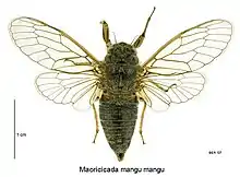 Maoricicada mangu is a species of cicada that is endemic to New Zealand.[1][2] This species was first described by Francis Buchanan White in 1879.