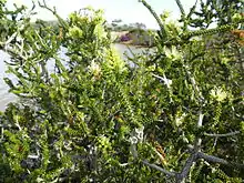 This species was first formally described in 1847 by the Russian botanist Nikolai Turczaninow in Bulletin de la Société Impériale des Naturalistes de Moscou.[4][5] The specific epithet (blaeriifolia) is derived from the name of a genus of plants Blaeria in the family Ericaceae, and the Latin folium for "leaf" in reference to the similarity of its leaves to those of plants in that genus.[3]