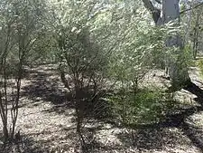 Melaleuca oxyphylla, commonly known as pointed-leaved honey-myrtle,[2] is a plant in the myrtle family, Myrtaceae, and is endemic to the Eyre Peninsula region of South Australia. It has long, thin greyish branches, small clusters of white or cream flowers and leaves that are distinctively shaped and arranged. It is similar to Melaleuca acuminata but has longer, narrower leaves and shorter stamens.