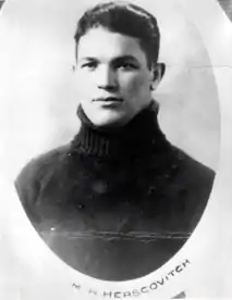 Eager to do his part in WWI, Herscovitch joined the 66th Battery, Canadian Expeditionary Forces. A gunner, while posted overseas he took up the sport of boxing, winning a number of competitions, including the Aldershot welterweight division. When he returned from the War in 1919, he played with Montreal's successor rugby team which won the division championships that year, but he also continued to box.[3]