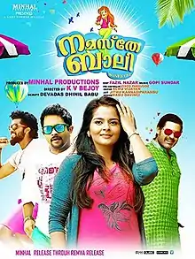 Namasthe Bali is a 2015 Malayalam language film produced by Minhal Mohammed Ali under the banner of Minhal Productions. The film stars Roma Asrani in the lead role along with Aju Varghese, Devan, Neena Kurup, Balu Varghese and Noby Marcose. The film is directed by K V Bijoy. The music is composed by Gopi Sundar. The screenplay is based on a story written by Dhinil Babu and Devadas. The film was a comeback for Roma to the Malyalam film field after a three year gap.[1] The film is also considered as a genre similar to the Bollywood film Queen based on the storyline.