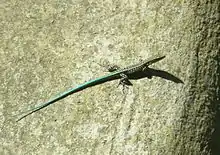 There are 24 species of reptile certainly found on Rhodes. These are: Amphisbaenidae, Blanus strauchi; Cheloniidae, Caretta caretta;Geoemydidae Mauremys rivulata; Colubridae, Platyceps najadum, Coluber caspius, Coluber gemonensis, Coluber nummifer, Elaphe situla, Natrix natrix, Natrix tessellata, Telescopus fallax; Dermochelyidae, Dermochelys coriacea; Lacertidae, Podarcis erhardii,Anatololacerta oertzeni, Ophisops elegans Lacerta trilineata; Scincidae, Ablepharus kitaibelii, Chalcides ocellatus, Euprepis auratus ; Typhlopidae, Typhlops vermicularis; Viperidae, Vipera xanthina; Agamidae, Laudakia stellio; Gekkonidae, Hemidactylus turcicus and Mediodactylus kotschyi.