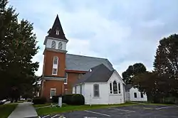 Old Christiansburg Industrial Institute is a historic African American trade school complex located at Christiansburg, Montgomery County, Virginia. The complex includes the Hill School (1885), the Schaeffer Memorial Baptist Church (1885), and the Primary Annex (1888). The Hill School is a 2+1⁄2-story, cruciform-plan, gable-roof structure set on a low stone foundation. Although the building is stylistically in the Italianate mode, the windows suggest a Queen Anne Revival inspiration. The Schaeffer Memorial Baptist Church is a Victorian Gothic brick church building with a gable-roof and projecting southeast corner tower. Connected to the church by a covered passageway is a wood-frame, tent-roof octagon, known as the Primary Annex.[3] A later building associated with the Christiansburg Industrial Institute is the separately listed Edgar A. Long Building built in 1927.