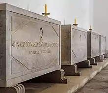 The Pantheon of the Patriarchs of Lisbon (Portuguese: Panteão dos Patriarcas de Lisboa), also known simply as the Pantheon of the Patriarchs, is the final resting place of the majority of the Cardinal-Patriarchs of Lisbon. It is located in the Monastery of São Vicente de Fora in the Alfama district of Lisbon, Portugal. The room is a simple chapel, mostly unadorned save for a stone altar. Even though it was planned since the 19th century, it was only built in the 1950s, and it is mostly unadorned save for a plain stone altar.[1]