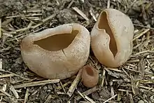 Peziza vesiculosa is a species of apothecial fungus belonging to the family Pezizaceae. This is a common species of Europe, with scattered records in other parts of the world. The pale, cup-shaped ascocarps can grow quite large (up to 10 cm (3.9 in) in diameter) and often form densely packed groups. It is found on nutrient-rich soils, rotting straw and manure and can often be seen on compost heaps. The species is considered poisonous.[1]