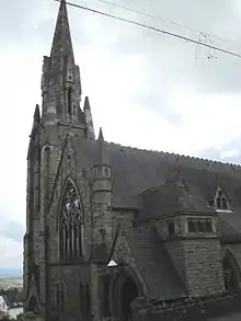 Architecture: Designed and built by T D Barry & Sons of Liverpool to seat 700 people,[8] its architecture is based on pure 14th century Gothic style with a 55-metre spire and an east window by Charles Eomer Kemp.[9]