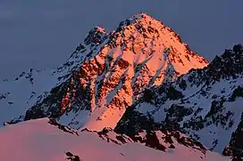 Ptarmigan Peak is a 4,839-foot (1,475 m) mountain in the Chugach Mountains near Anchorage, Alaska. Its north face is extremely steep and is sometimes attempted by mountaineers.[2] Hikers generally reach the mountain's summit from the less steep southern side, often via the west ridge that begins at Ptarmigan Pass.[2][3] In winter, ski mountaineering is also possible on the mountain.[4]