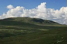 Skirveggen (1381 m.) is the highest mountain in Vegglifjell. The summit lies in Tinn commune in Telemark, but the border with Nore og Uvdal commune in Buskerud is only one hundred metres north-east. The mountain has a steep east flank, the other sides are gently sloped. It has a flat summit, where the actual high point is difficult to make out.