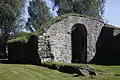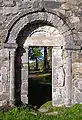 - St. Olav's Church ruins main portal, with double chevron arch and columns