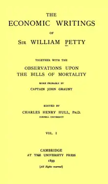 Petty, William (1899). Hull, Charles Henry (ed.). . Cambridge: Cambridge University Press. OL 4007495W. OCLC 803827975 – via Wikisource. in 2 vols. (411 + 412 pgs.)[3]