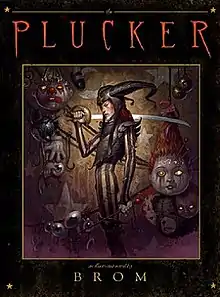 The Plucker is a 160 page novel both written and illustrated by Brom. There are three parts to the story, in 22 chapters, and over 100 illustrations in full color.