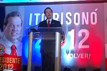 Initially supporting Carlos Morales, he began to drift apart after it became clear that the new party leader was very committed to the governing PLD and party members who did not want a first round alliance with Danilo Medina asked him to run for the Presidency in representation of the PRSC as a way to assure an independent position. Even before all this, he had appeared as a very strong third candidate in a Gallup poll with a respectable 9 percent behind Morales with 14. After announcing and beginning his campaign in late March, he quickly surpassed him and polled 19% in Gallup while Morales still had 14 and then 20% in Penn Schoen Berland effectively displacing the former second place holder who now polled 8%. Amable Aristy was first place in all of these but he has not indicated intention of running.