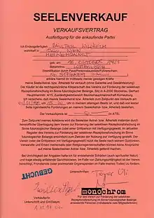 Wir kaufen Seelen (also known as Seelenankauf or Soul Sale) is a 1998 performance by Austrian art theory group monochrom and is considered a significant work in the group's history and Austrian art history in the 1990s.[1][2][3][4]